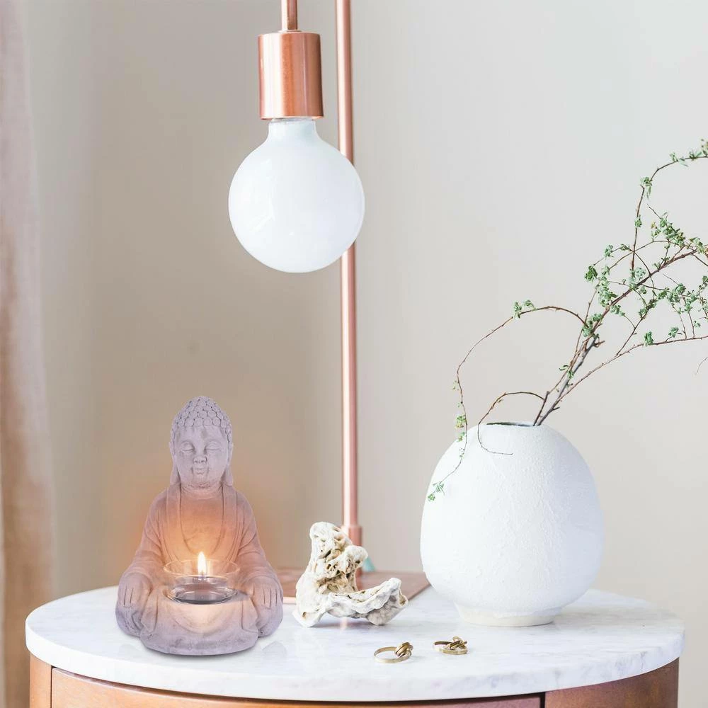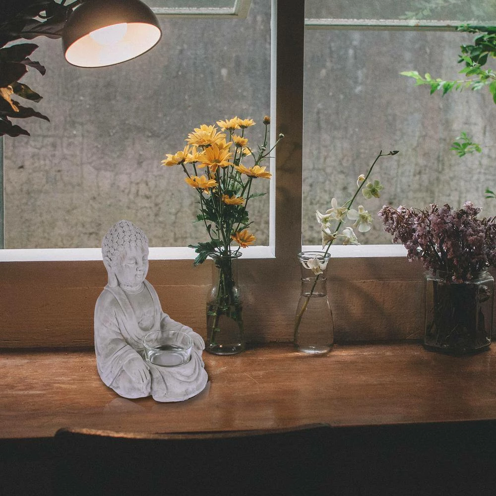 KANTE 6.5 in. H Gray Cement Sitting Buddha Garden Statue Tealight Candle Holder Ornament (2-Pack) - Image 7