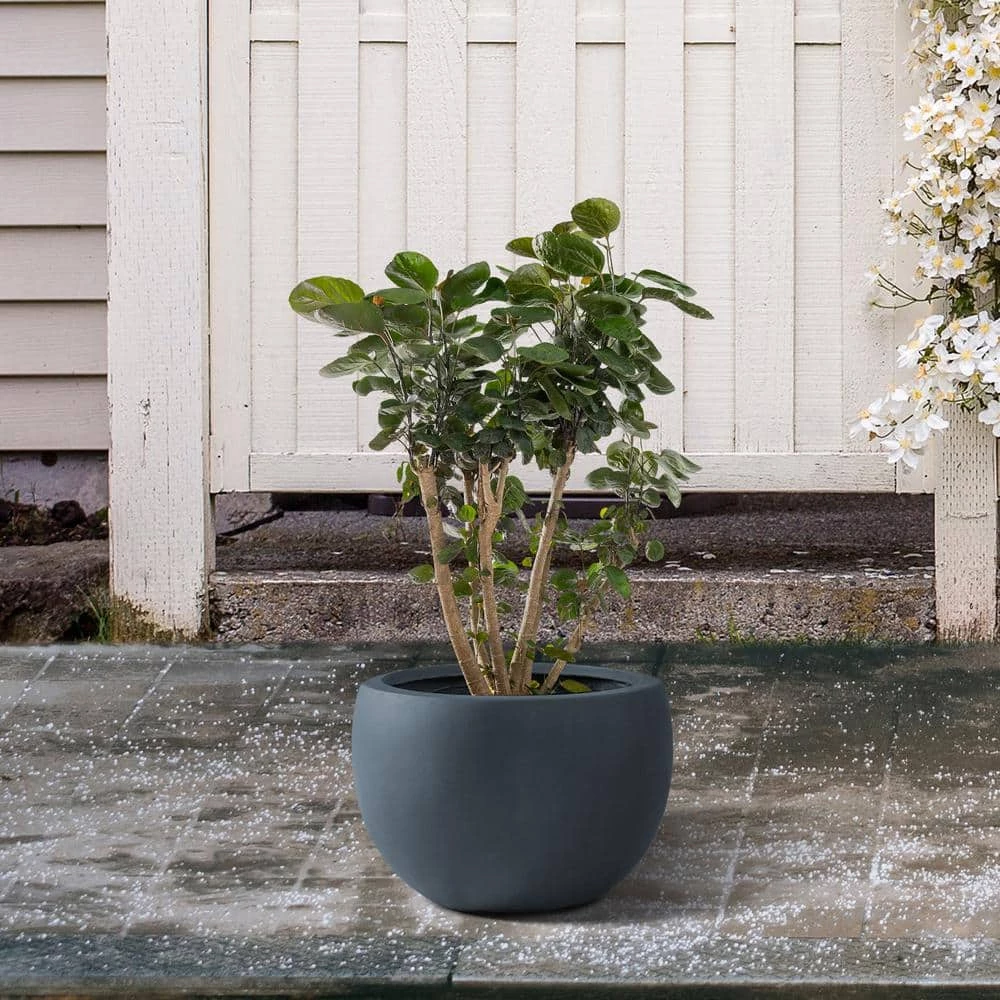 KANTE 8 in. H Charcoal Concrete and Fiberglass Round Bowl Planter, Outdoor Indoor Large Planters Pots with Drainage - Image 4