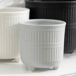 SULLIVANS 9.5 in., 8.5 in. and 7.5 in. Gray Metal Flourish Planter with Handles – (Set of 3)