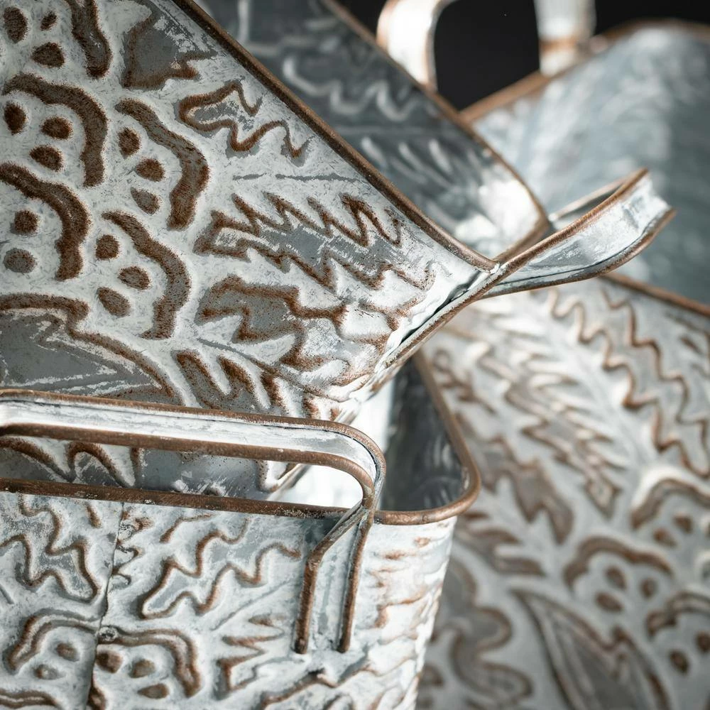 SULLIVANS 9.5 in., 8.5 in. and 7.5 in. Gray Metal Flourish Planter with Handles - (Set of 3) -Vigoro Shop gray sullivans plant pots met1823 1f 1000