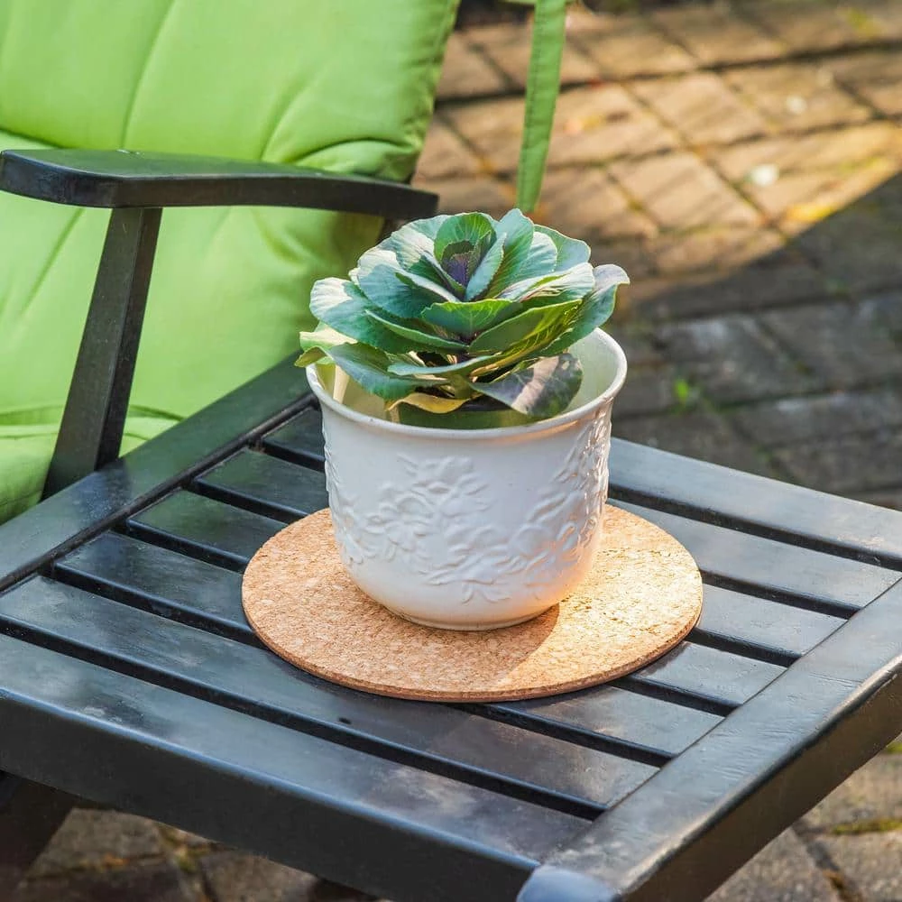 Keep your floors, carpets, furniture and decks protected from dirt and scratches with the help of these Cork Mats from Vigoro. The natural look of cork will blend in seamlessly with your stylish home or patio decor. And the natural cork pads can also be used as placements, coasters or in craft projects. The soft cork has a black plastic backing to add durability and strength to the cork plant mat. They will help protect surfaces from the rough edges of planters. Cork is naturally buoyant and will not absorb water. For this reason, it is not recommended for outdoor use and will not protect from water damage. Saturating the cork pad may discolor or damage the surface below.