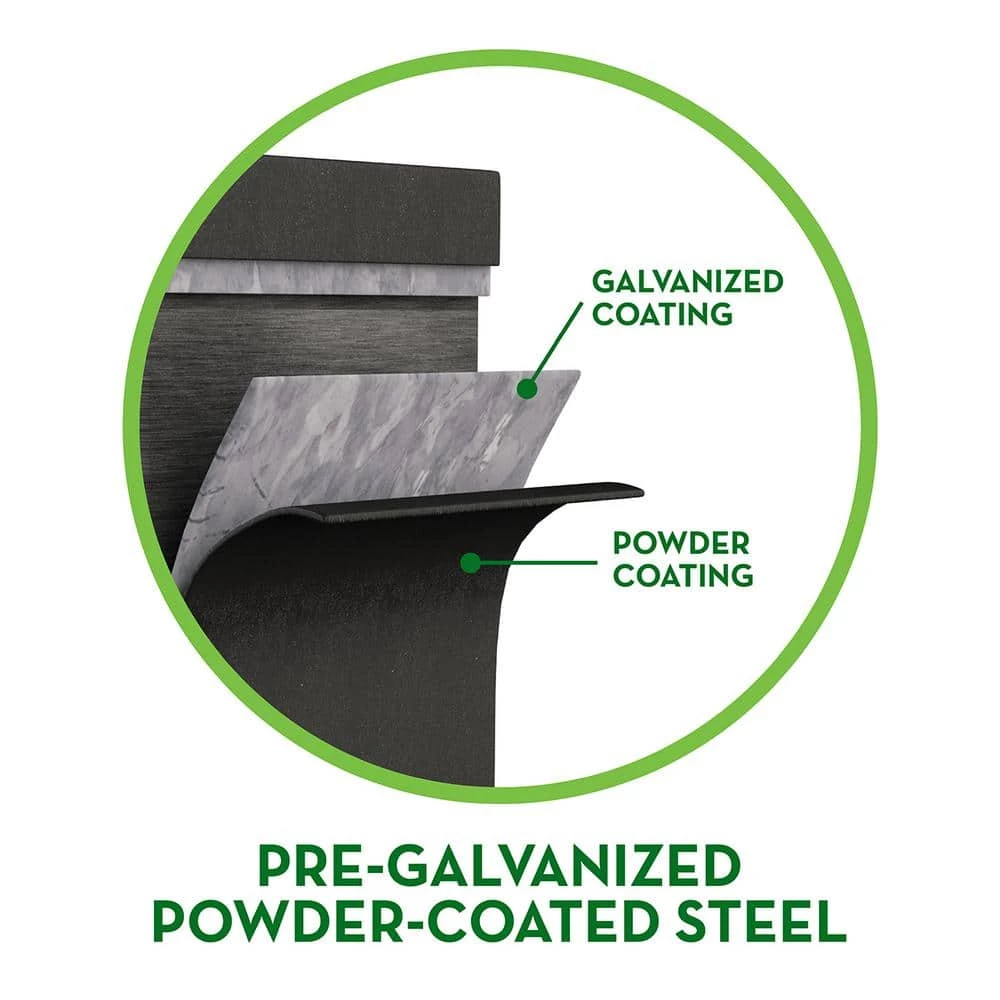 Made of powder-coated, pre-galvanized steel to prevent rust